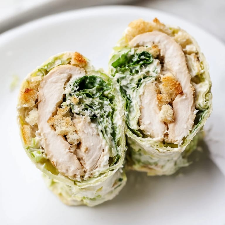 If you're making these ahead, keep the chicken and salad separate until you're ready to eat, then assemble fresh so the tortilla doesn't get soggy. Wrapping them tightly in parchment paper or foil helps them hold their shape, and they stay good in the fridge for a day if you need to prep for tomorrow's lunch. Just know that the croutons will soften over time, so add those last minute if you can.