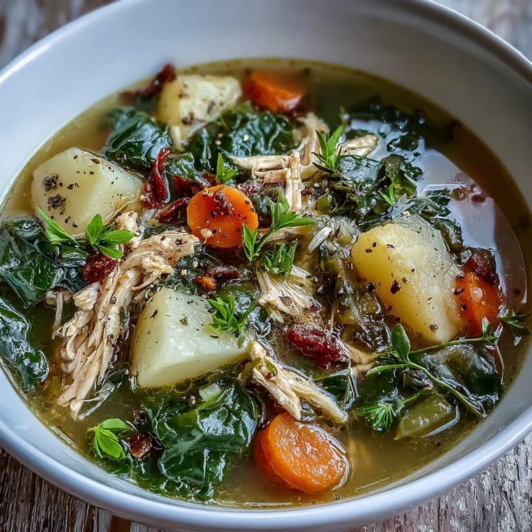 Save to Pinterest Experience the ultimate comfort in a bowl with this Collard Greens, Chicken and Vegetable Soup. This hearty and nourishing dish brings together tender shredded chicken, earthy potatoes, and vitamin-rich collard greens in a beautifully flavored, clear golden broth. It is a wholesome, easy-to-make meal that warms you from the inside out, perfect for a cozy weeknight dinner.