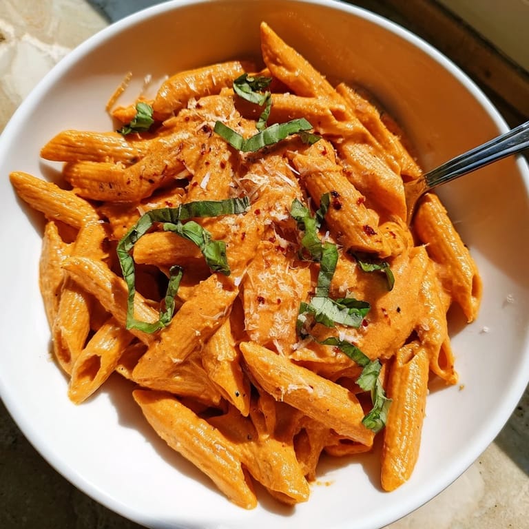 Save to Pinterest The first time I made this roasted red pepper sauce, I stood in my tiny apartment kitchen watching the blender transform those jarred peppers into something that looked like it came from a restaurant. My roommate wandered in, drawn by the smell of garlic and onions hitting the hot oil, and asked if I'd been secretly taking cooking classes. We ate it standing up at the counter, too impatient to bother with plates, and I remember thinking how something this luxurious shouldn't be so incredibly simple to throw together on a Tuesday night.