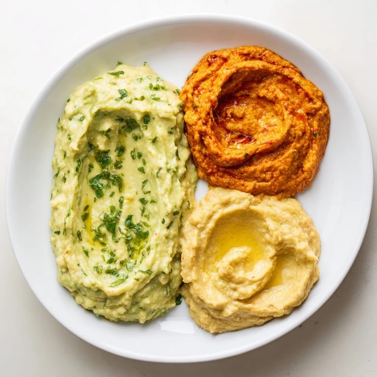This vibrant dip trio is sure to impress and satisfy any crowd with its fresh flavors and beautiful presentation.