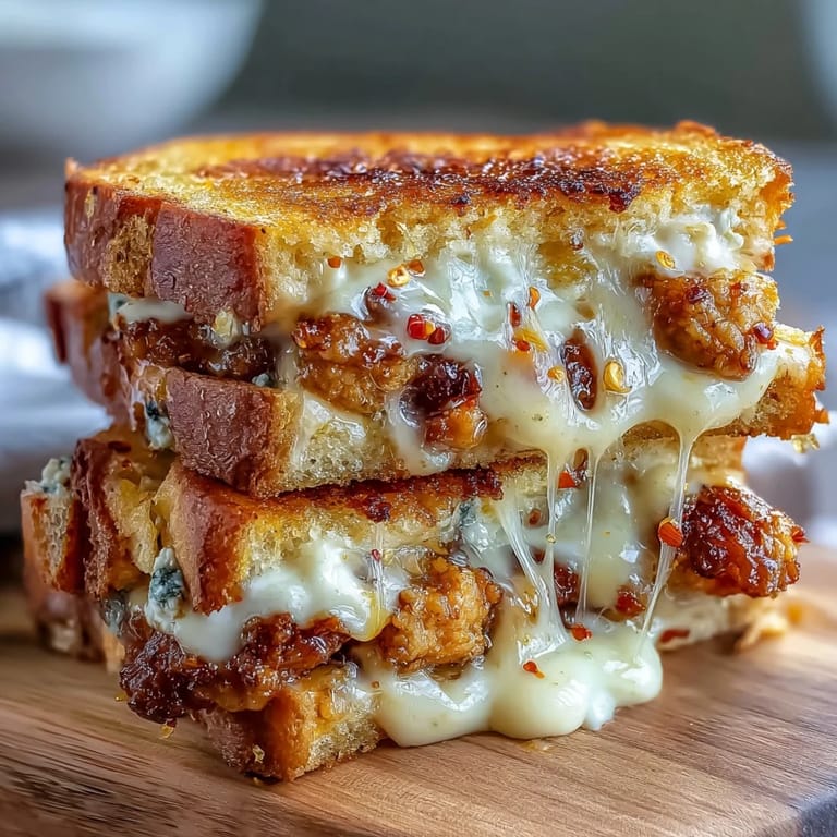 Save to Pinterest My neighbor showed up at my door one afternoon with a jar of homemade hot honey and that mischievous look that usually meant trouble in the kitchen. She'd been experimenting with spicy condiments and insisted I needed to taste it on something unexpected. I had leftover rotisserie chicken, some tangy goat cheese, and a loaf of sourdough sitting on the counter, so we decided right then to build the most indulgent grilled cheese sandwich either of us had ever attempted. The moment that first bite hit—crispy bread giving way to melted cheese, tender chicken, and that perfect heat followed by sweet honey—we both went silent. No words needed. We just made another round immediately.