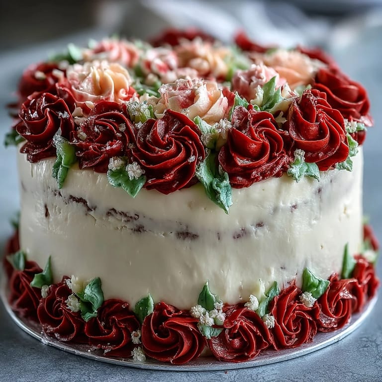 The roses look fancy but they're honestly just repetitive practice in a piping bag—each rose is made from overlapping petal strokes, and even wobbly ones look charming when they're clustered together. I spent an evening piping practice roses on a sheet of parchment, and by the tenth one, my hand remembered the motion. The key is not being precious about perfection; even slightly lopsided roses look intentional and beautiful when you add leaves and fill in gaps with smaller touches.