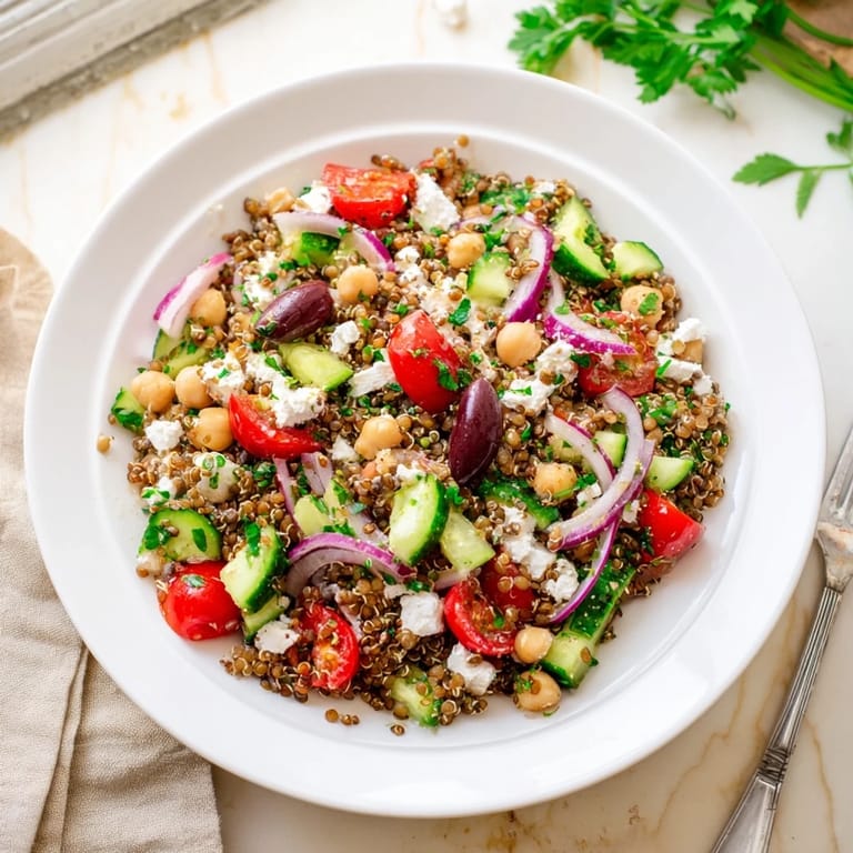 Save to Pinterest My neighbor handed me a container of this salad over the fence on a Tuesday afternoon, insisting I needed real food after seeing me survive on toast for three days. One forkful and I was furious I'd waited so long to learn how simple it was to make something this satisfying. The lentils had soaked up the vinaigrette, the quinoa added this nutty chew, and the olives gave every bite a salty punch that kept me coming back. I made my own batch that weekend and haven't stopped since.