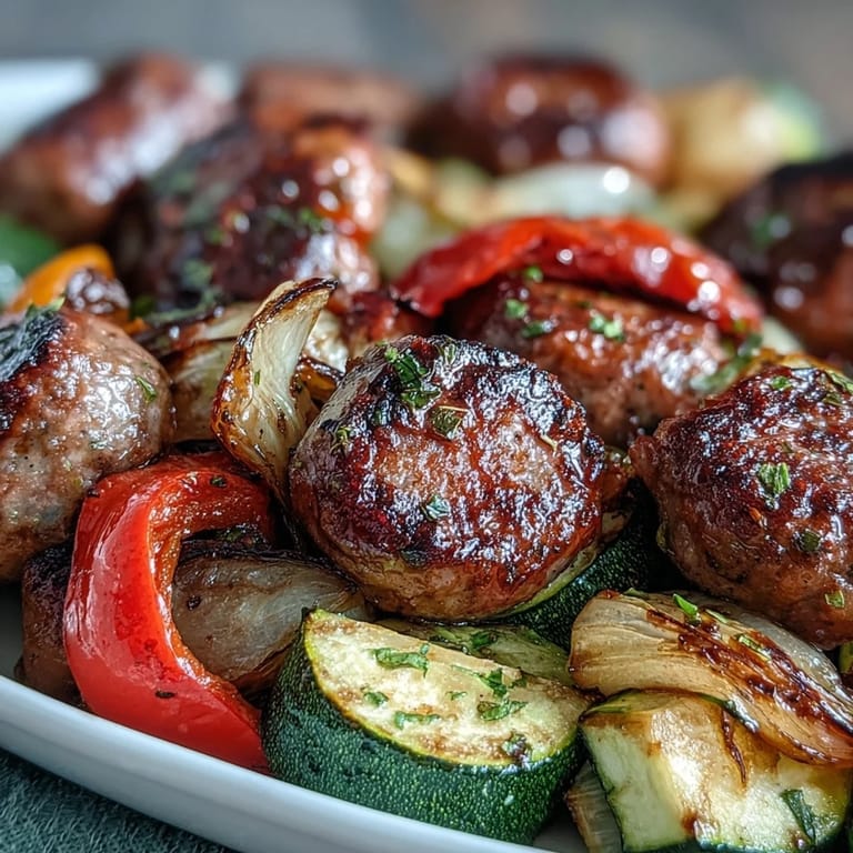 The real star of this dish isn't the sausage—it's what happens to the vegetables when heat meets their natural sugars. At 425°F, the peppers and zucchini don't just cook; they transform into something sweeter and deeper than their raw selves. The onions become almost candy-like, and this is why sheet pan cooking works so well: everything sits in that heat together, developing flavors that would take much longer if you cooked components separately.