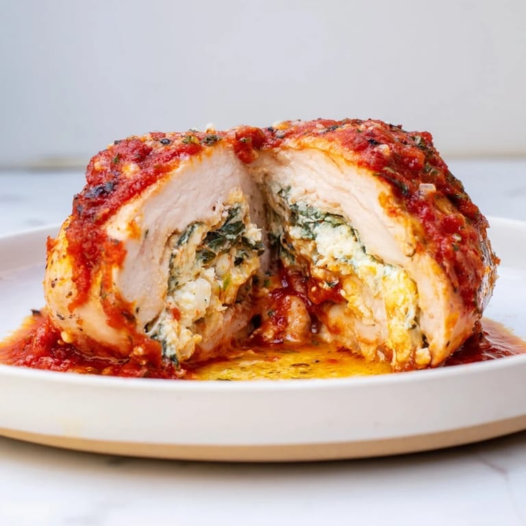 Save to Pinterest The steam rising from the skillet, the way the ricotta oozed just slightly when I sliced into that first breast—it was one of those nights when I actually surprised myself. I'd been staring at chicken breasts and a container of ricotta for twenty minutes, convinced I'd overcomplicate it. Instead, I tucked spinach and cheese into those pockets, let them sear until golden, and watched them finish in a bubbling tomato sauce that smelled like someone else's kitchen, someone who knew what they were doing. That first bite was creamy, savory, and just enough lemon to make it interesting.
