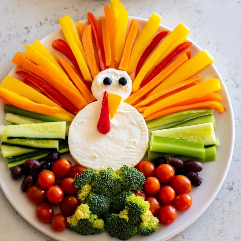 Save to Pinterest A festive and creative appetizer platter arranged in the shape of a turkey, perfect for holiday gatherings and sure to delight guests of all ages.