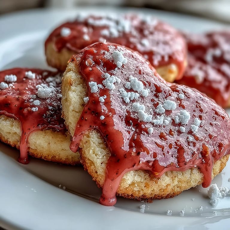 Save to Pinterest My sister texted me a photo of red velvet ribbon last February, asking if I could make cookies that looked half as pretty. I laughed because I'd never attempted anything decorated before, but something about that challenge stuck with me. That afternoon, I found myself blending fresh strawberries into the most vibrant purée, and somehow my kitchen smelled like a farmers market crossed with a bakery. By evening, I had dozens of heart-shaped cookies lined up on the counter, each one wearing a blush of strawberry pink. It became the thing I made every Valentine's since.