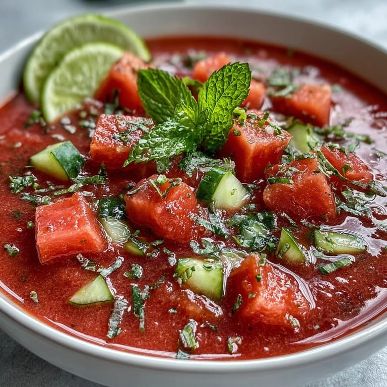 Save to Pinterest There's a particular kind of relief that comes from standing in front of an open refrigerator on a scorching afternoon, searching for something that feels less like eating and more like salvation. That's when watermelon gazpacho entered my life—not from a cookbook but from pure kitchen desperation and a pile of farmers market produce that demanded to be used. The first spoonful was a revelation: sweet, cool, herbaceous, and alive in a way that made the heat seem almost manageable. I've made it countless times since, and it never feels like a recipe so much as a ritual that signals summer has fully arrived.